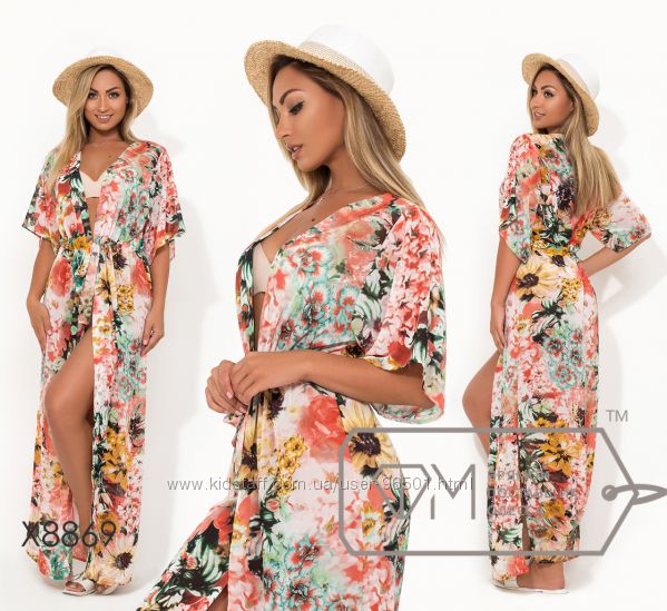 Модель № X8869 пляжная туника Цена: 340грн Размеры: 48-50 Ткань: шифон Длина: 148см ( до разреза сбоку 96см)