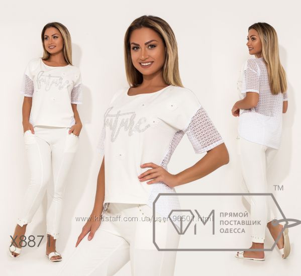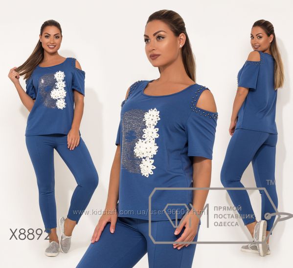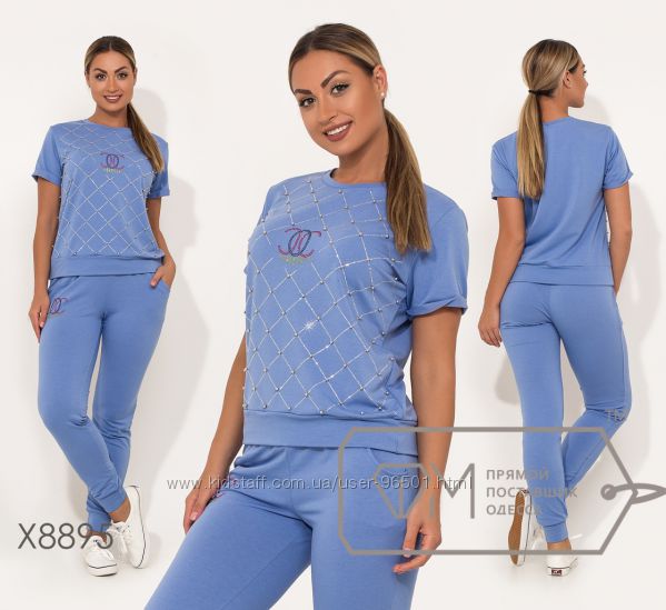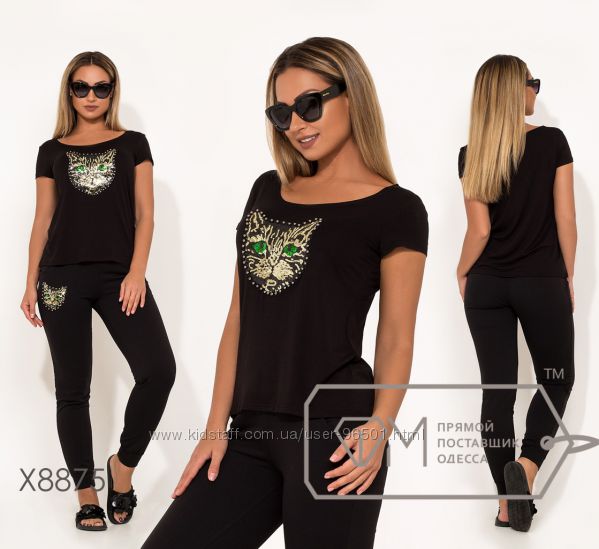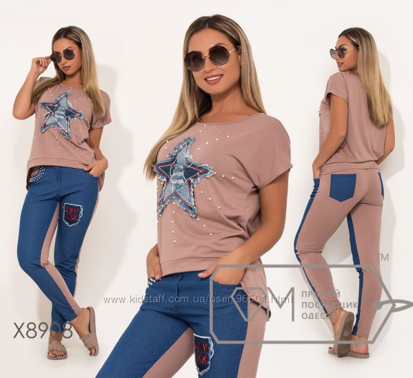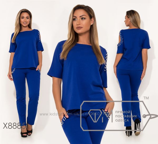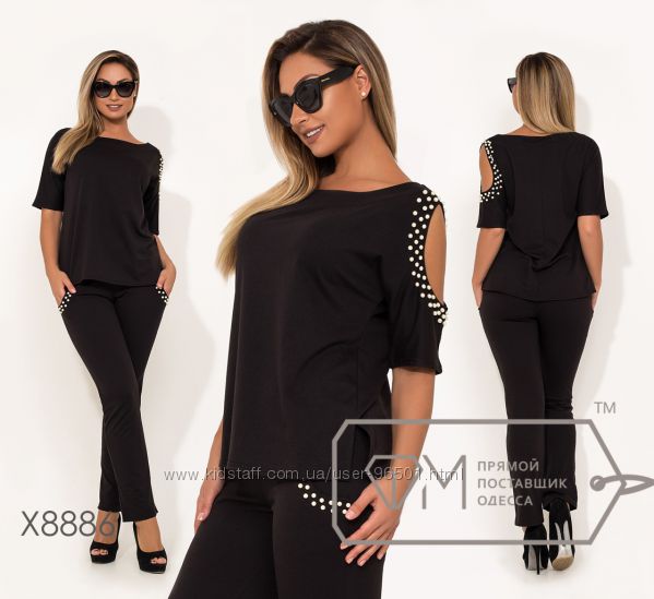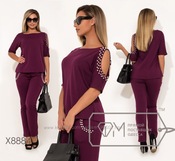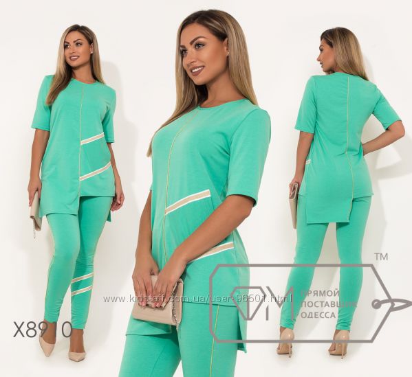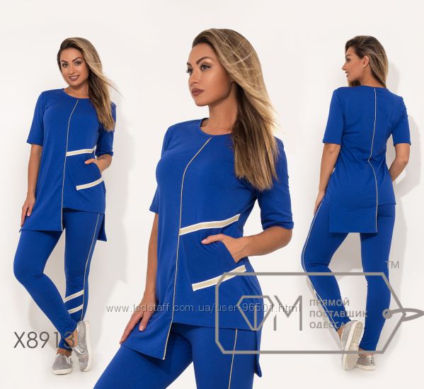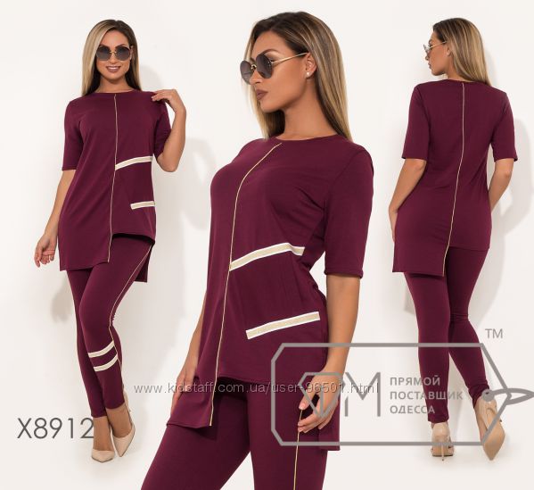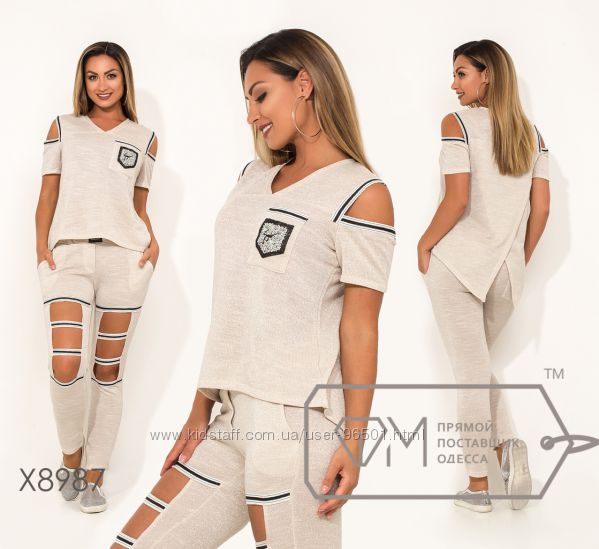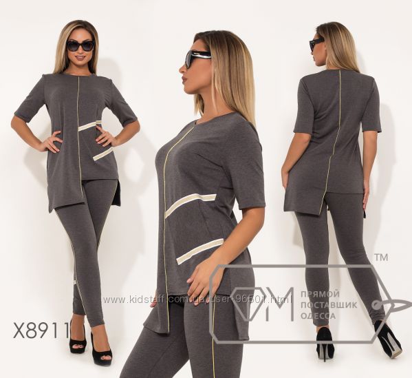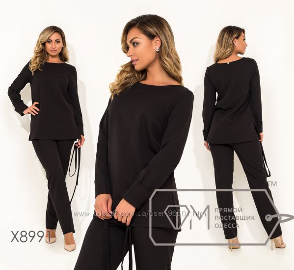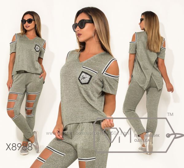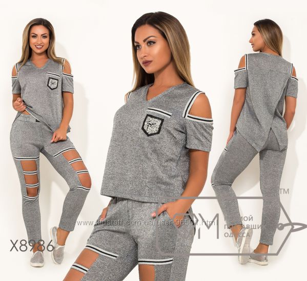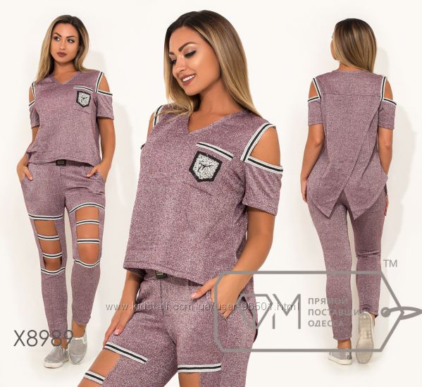 Модель № X8989 Цена: 570грн Размеры: 48, 50, 52 Ткань: трикотаж люрекс Длина кофточки: 56см/76см Длина брюк: по внешнему шву - 93см, по внутреннему шву - 73см (на резинке)
