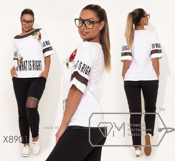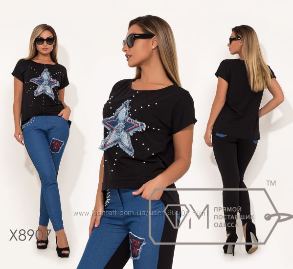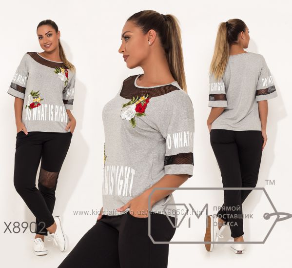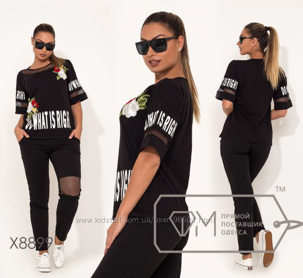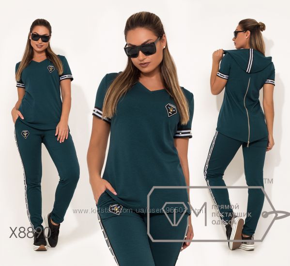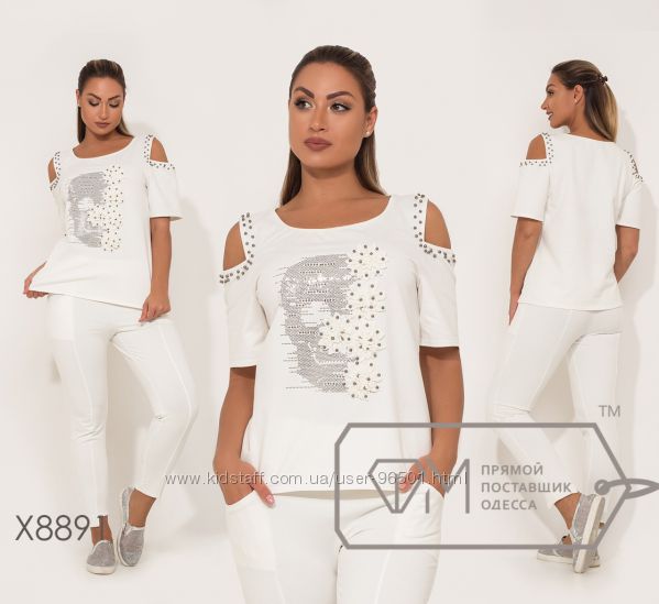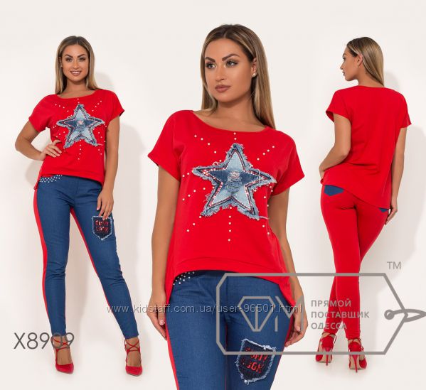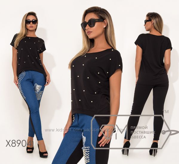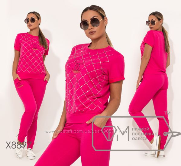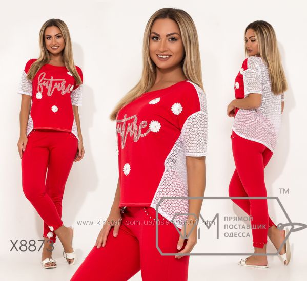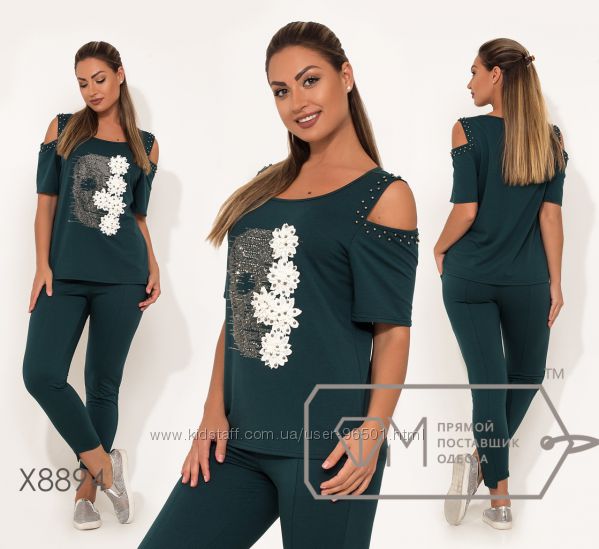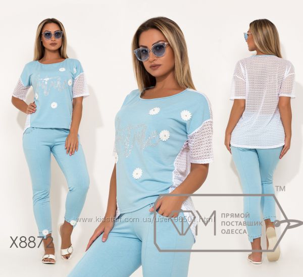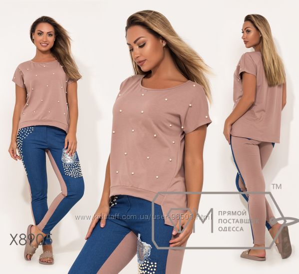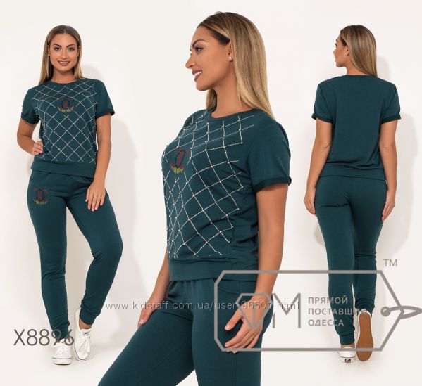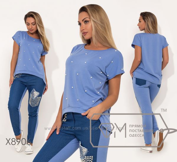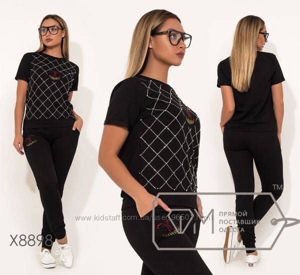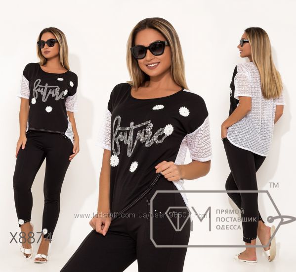 Модель № X8989 Цена: 570грн Размеры: 48, 50, 52 Ткань: трикотаж люрекс Длина кофточки: 56см/76см Длина брюк: по внешнему шву - 93см, по внутреннему шву - 73см (на резинке)