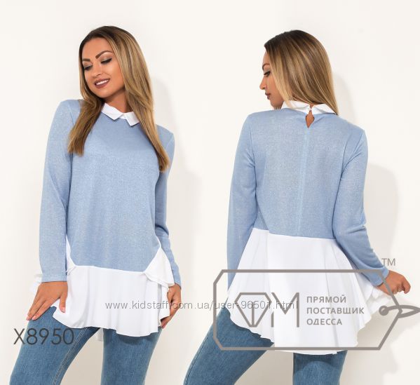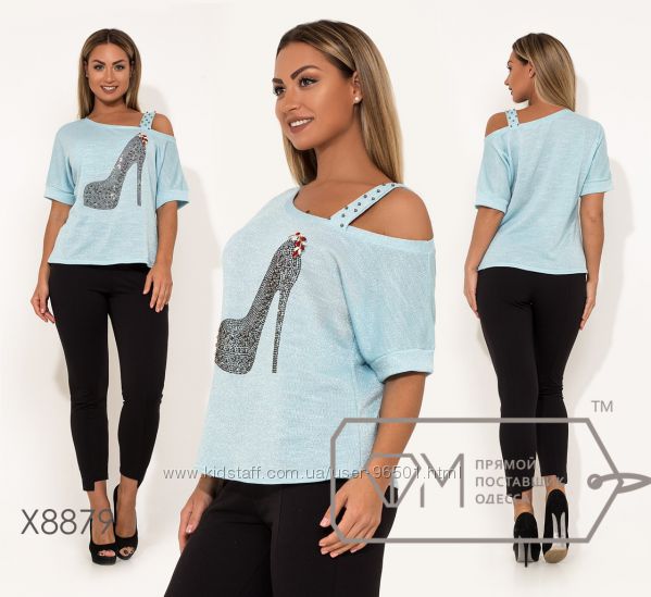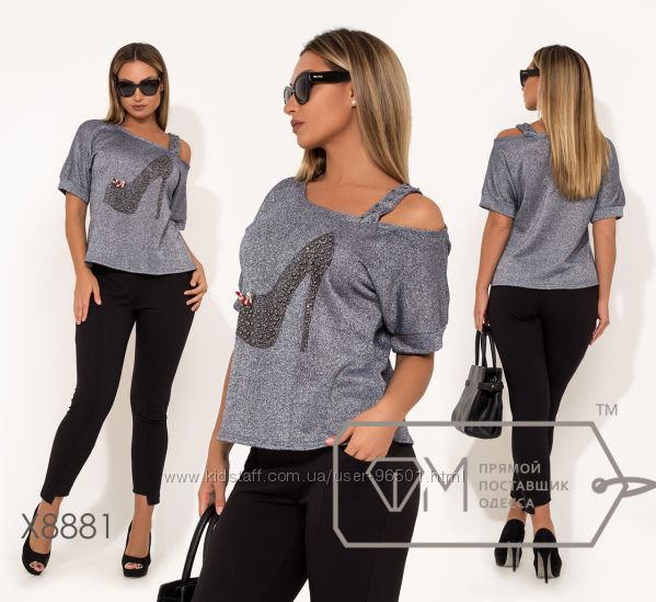 Модель № X8988 Цена: 570грн Размеры: 48, 50, 52 Ткань: трикотаж люрекс Длина кофточки: 56см/76см Длина брюк: по внешнему шву - 93см, по внутреннему шву - 73см ( на резинке)