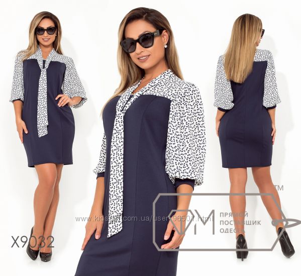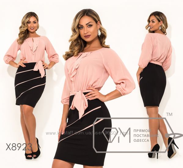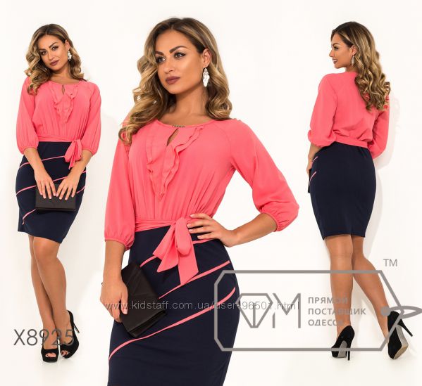 Модель № X8925 - платье Цена: 480грн Размеры: 48, 50, 52, 54 Ткань: верх - шифон, низ - креп дайвинг (пояс не съемный) Длина: 100см Длина рукава от горловинки: 52см