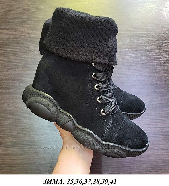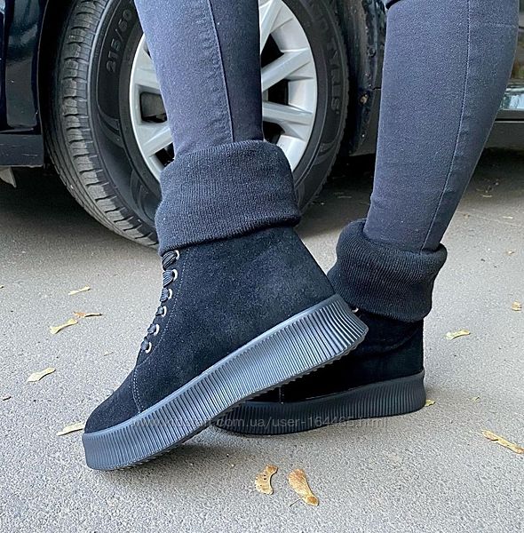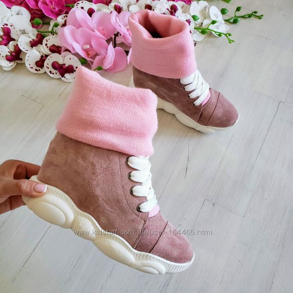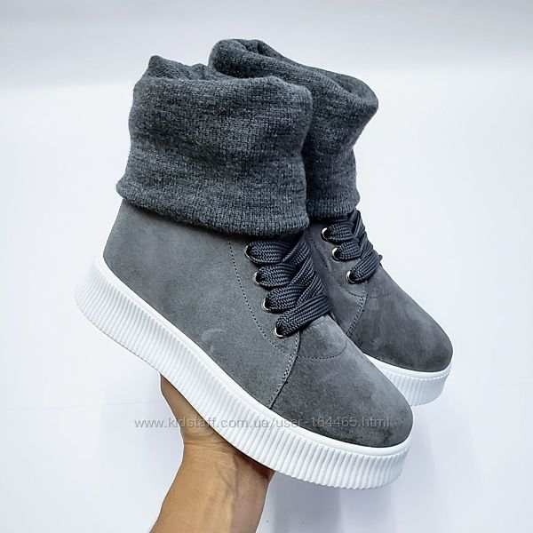 Замшевые кеды с довязом