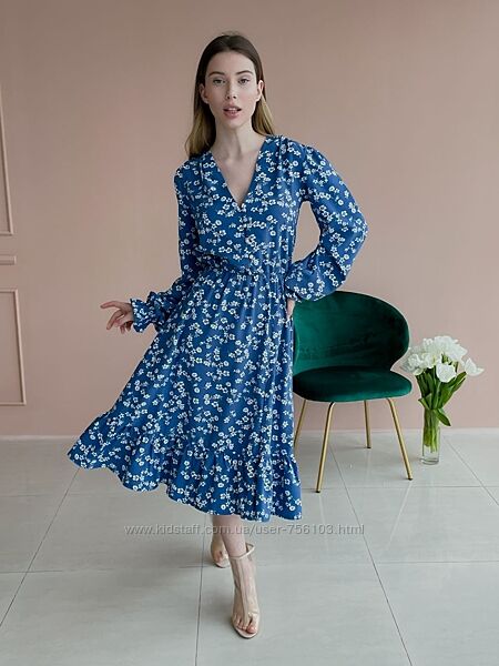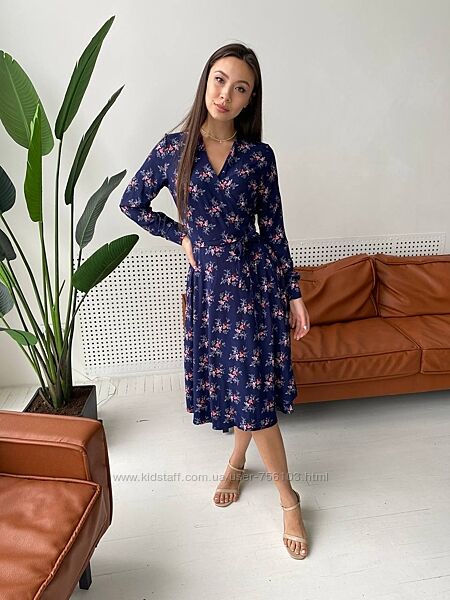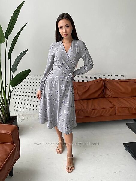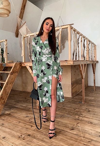 Сукня на запах, рукава на резиночці Тканина: полірований штапель-коттон Розмір: 42-46, 46-48