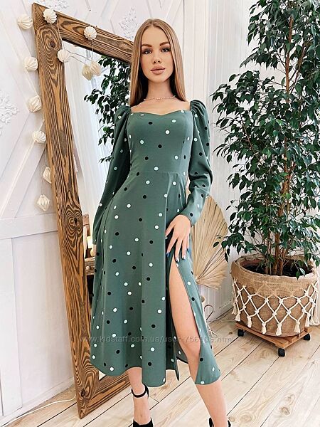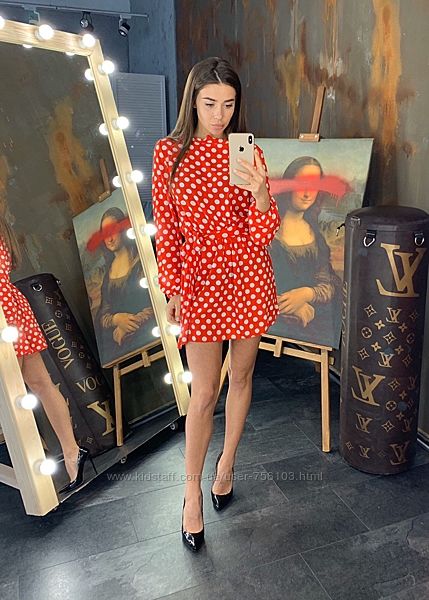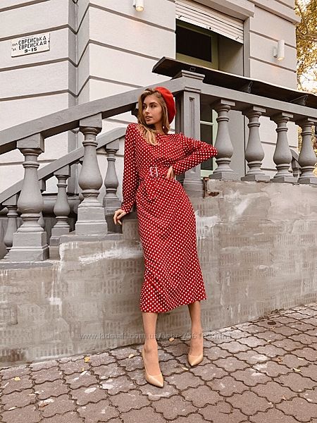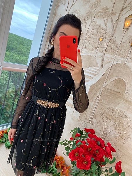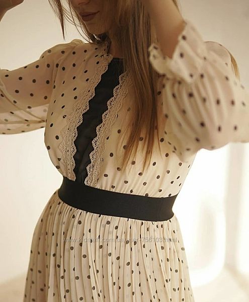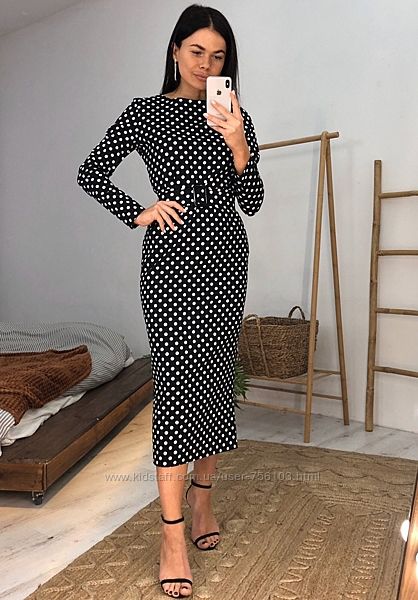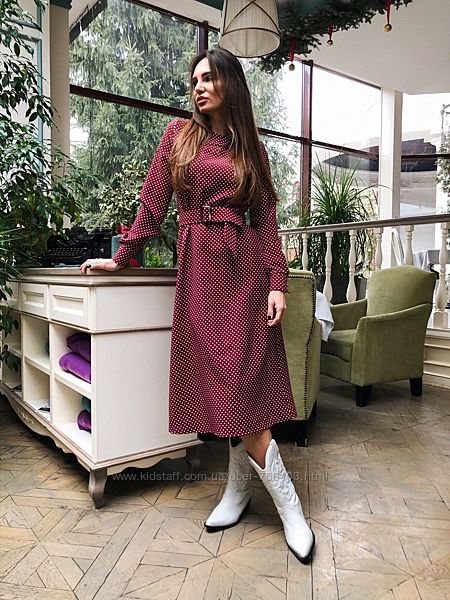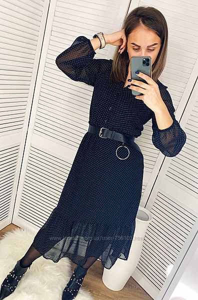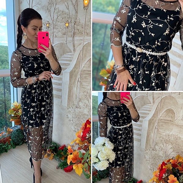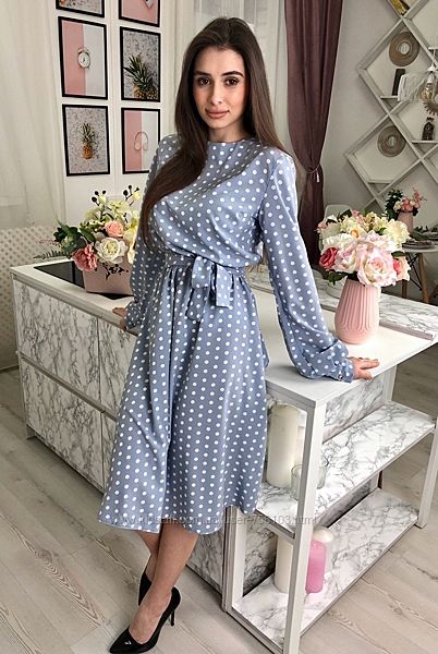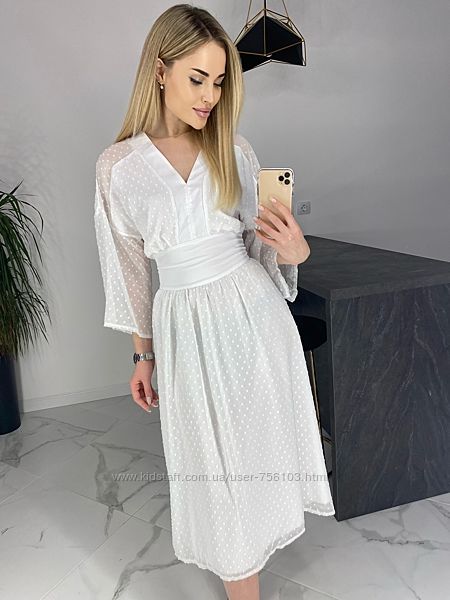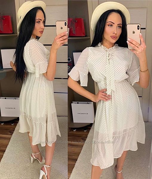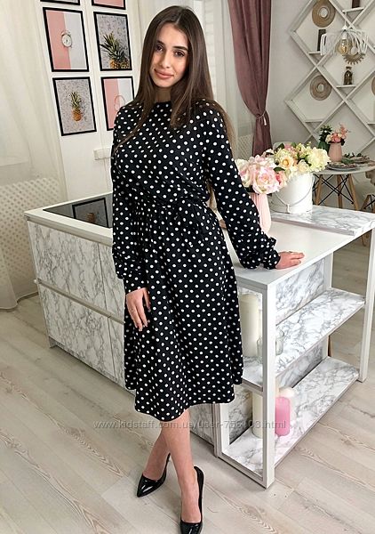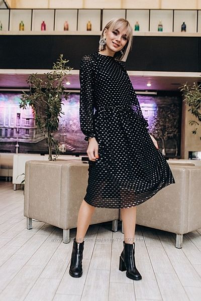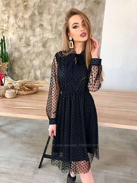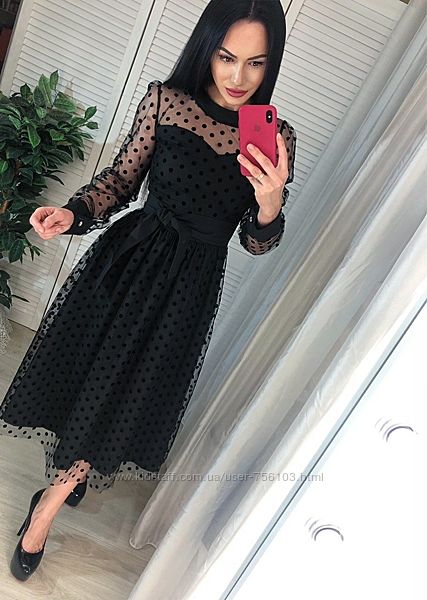 Размерный ряд 42,44,46,48,50,52 Цвета белый, красный, чёрный, марсала, изумруд Материал основа турецкий креп, рукава сеточка флок в горошек Длина изделия 108 см, рукав от горловины 72 см В комплекте пояс По спинке потайная змейка, рукавчик на резинке