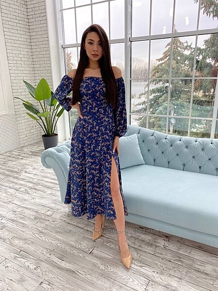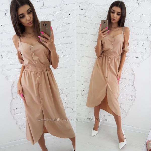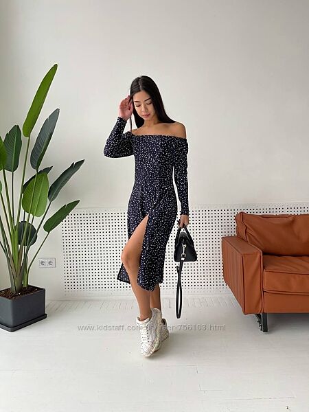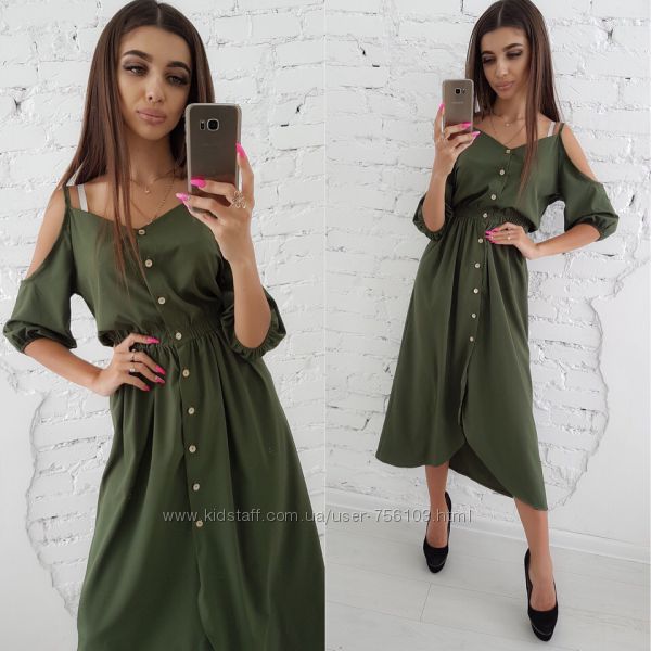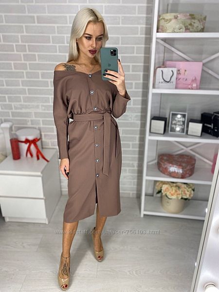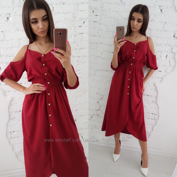 Элегантное платье с открытыми плечиками Размер: С и М Ткань: креп-костюмка