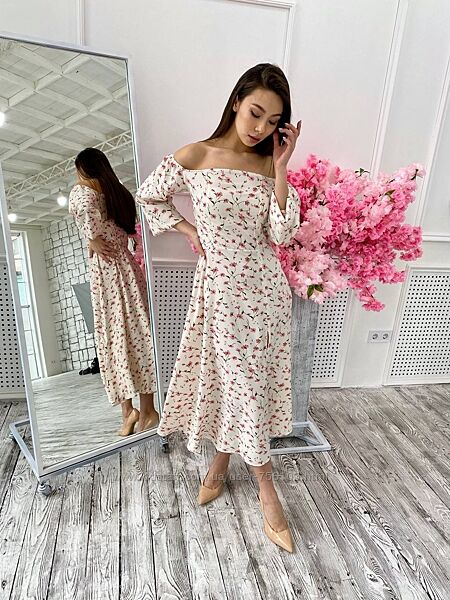 Кокетлива сукня з відкритими плечима Тканина: софт 6 кольорів ➡️ Розмір універсальний 42-44