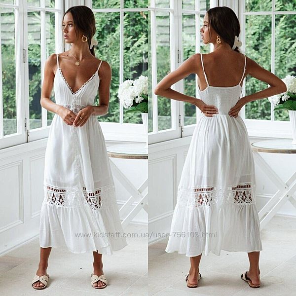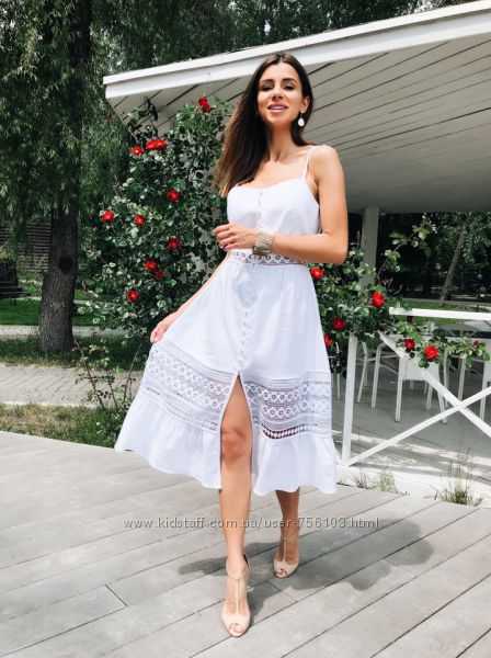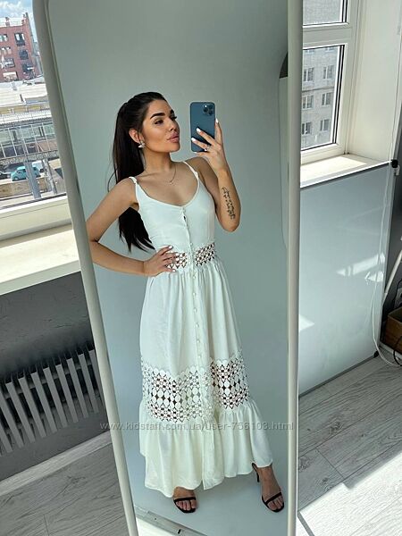 Сарафан Размер с-м и м-л Качество люкс !!! Ткань лён и кружево длина 115 ОГ и ОТ регулируется на спинке ОБ 100 см Цвет белый и черный