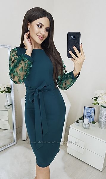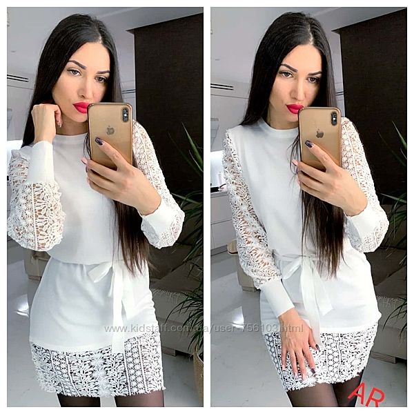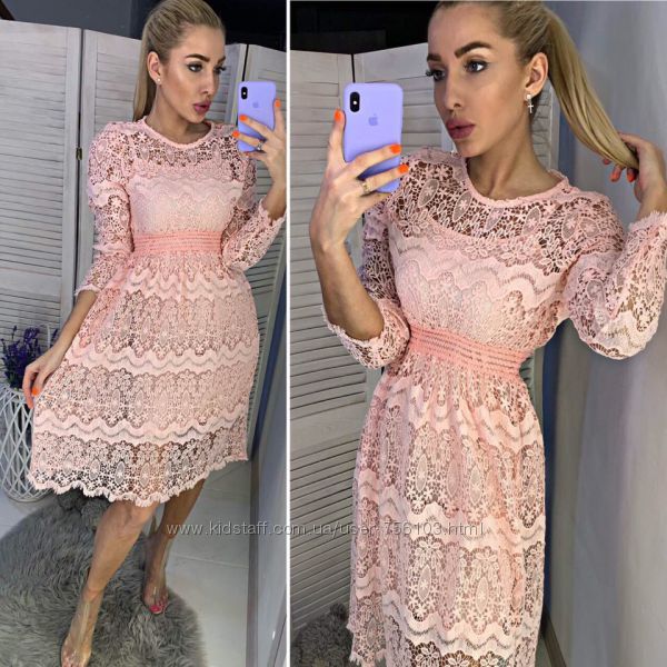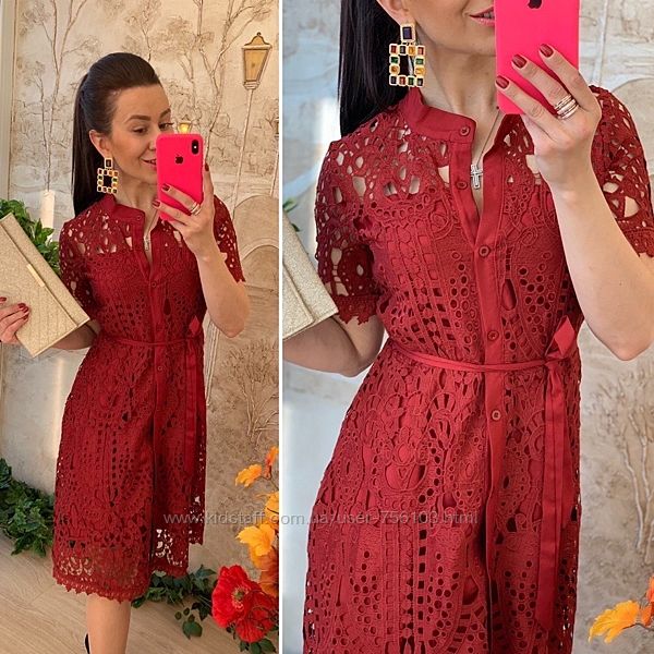 Размер 42,44,46 Ткань: гипюр + неопрен Длина изделия: 82 см. Цвета: Бордо, черный, красный, розовый, зеленый,