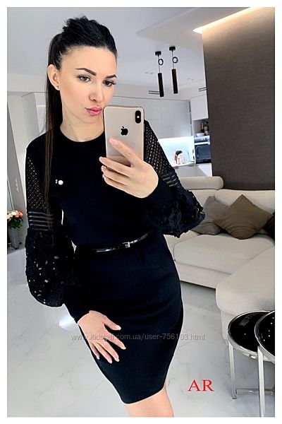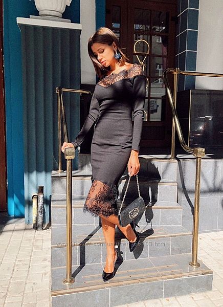 Платье Luxury Отменное качество ткань, плотная утягивающая ткань + дорогое кружево размер С/М универсал цвет черный