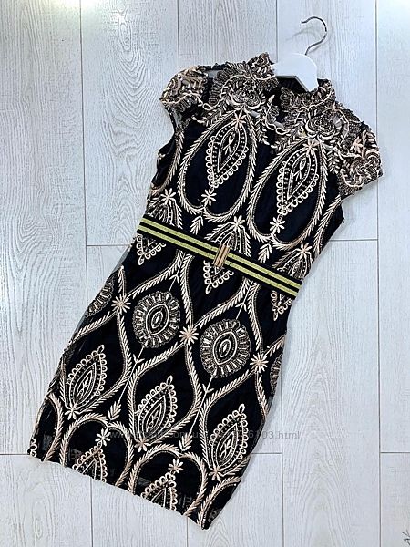 Платье Luxury Шикарное платье, отменное качество. Майка из плотного атягивающего трикотажа+платье золотое расшитое золотой паеткой Размер С, М Цвет золото.