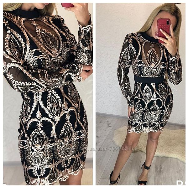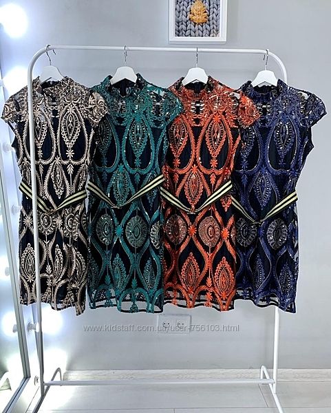 Размер 42,44,46 Ткань: паетки на трикотажной основе Длина: 107см Длина рукава: 43 см Цвета: черный, золото, серебро,