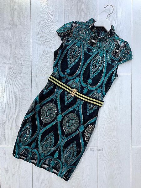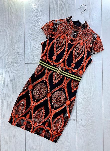 ткань сетка .расшита шелковой нитью и паеткой пояс в комплекте съемный (резинка) сзади змейка размер s m l длина 93 см цвет красный.синий.изумруд.беж