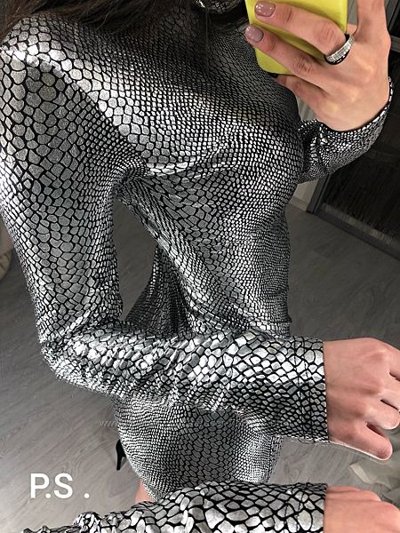 Шикарное платье Принт рептилия Серебро, черный Триктажная ткань с напылением Размер универсальный С/М