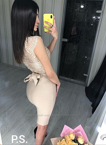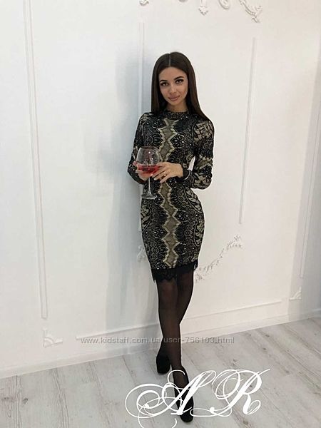 Платье Luxury Отменное качество ткань, плотная утягивающая ткань + дорогое кружево размер С, М цвет черный, бежевый