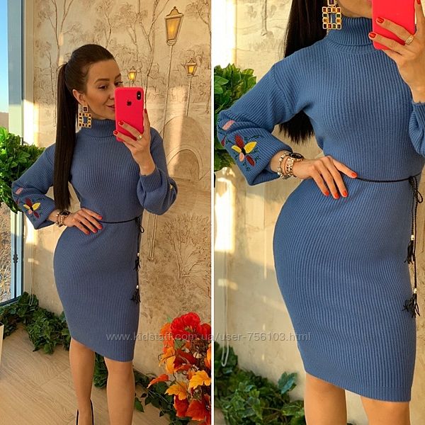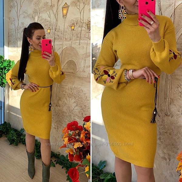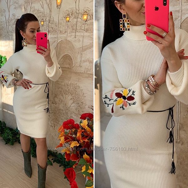 УЮТНОЕ,КОМФОРТНОЕ И ТЁПЛОЕ ПЛАТЬЕ С ВЫСОКИМ ГОРЛОМ И УДОБНЫМ ПОЯСОМ,НА РУКАВАХ И ВНИЗУ РЕЗИНКА ИЗ МЯГКОГО И ПРИЯТНОГО НА ОЩУПЬ ТРИКОТАЖА ГЛАДКОЙ МАШИННОЙ ВЯЗКИ ВЫСОКОГО УРОВНЯ, ДОПОЛНЯЕТ НЕЖНАЯ ЦВЕТОЧНАЯ ВЫШИВКА, РАЗМЕР УНИВЕРСАЛЬНЫЙ 42-46