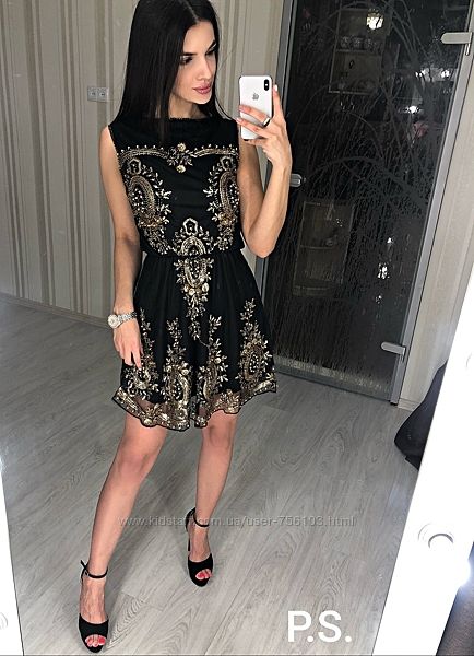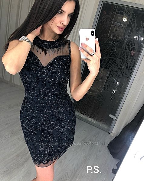 ткань плотная трикотаж.сферху сеточка расшита паетками и жемчугом сзади змейка длина 87см размер s m (стандарт)