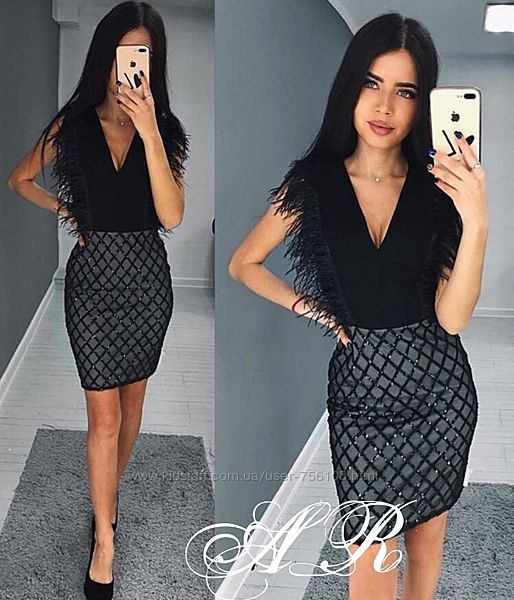 ткань плотный трикотаж юбка сетка на подкладке расшита паетками отделка перо размер s m l(стандарт) длина 83 см