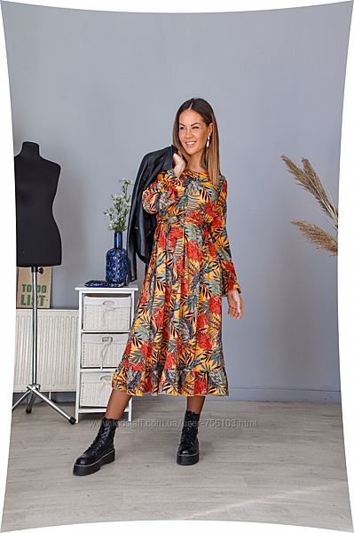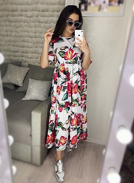 Размер 42,44,46 Ткань: принтованный софт Длина изделия: 87см. Длина рукава: 40 см