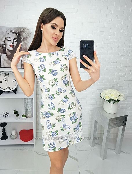 Розмір: 38,40,42 (44, 46, 48) Тканина: принтований лльон+кружево Колір: білий, м´ята