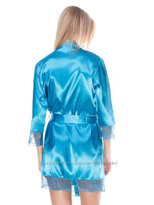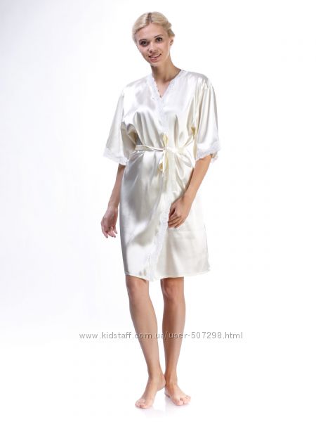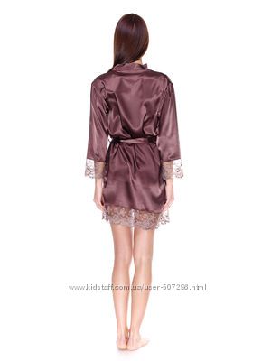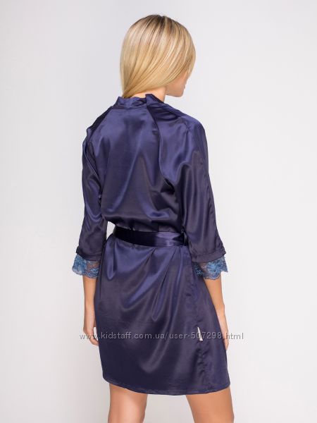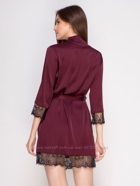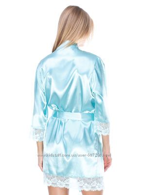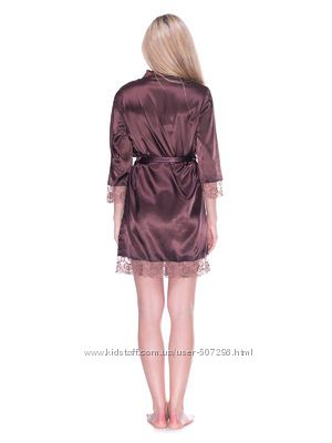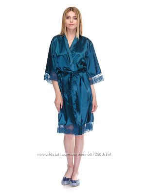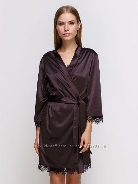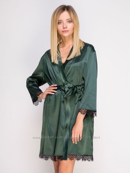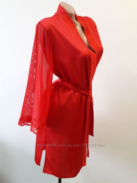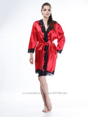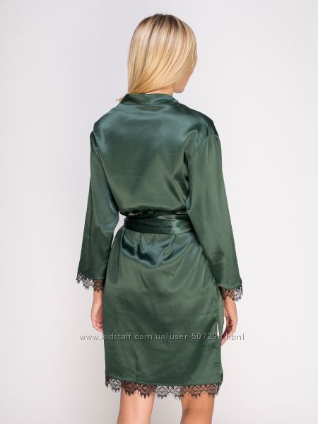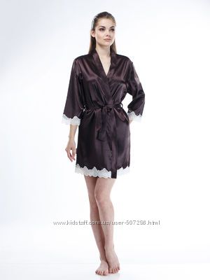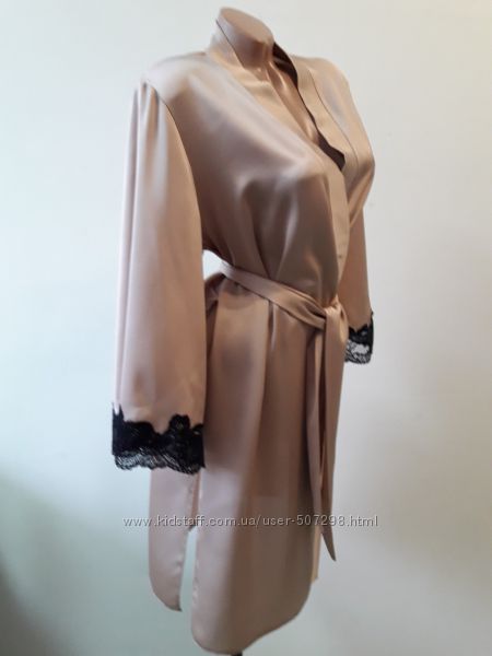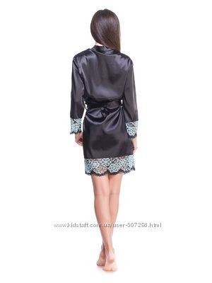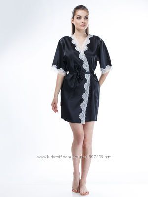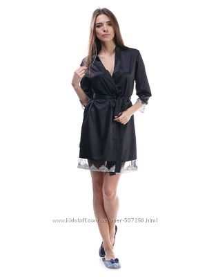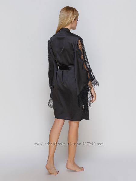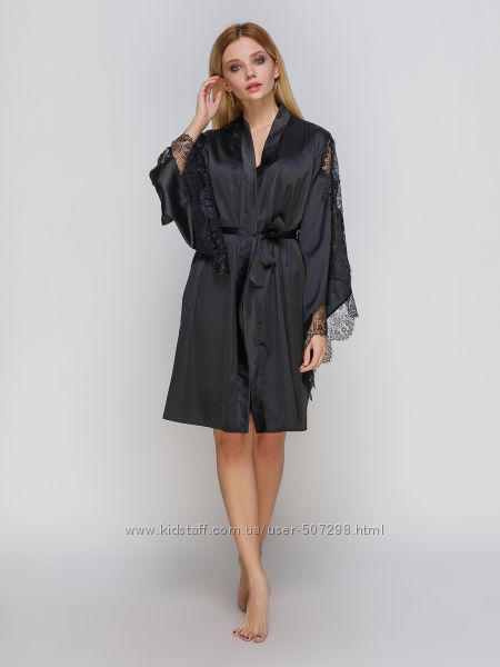 Халат черный широкий рукав с кружевом №311 шелк армани - 430 грн