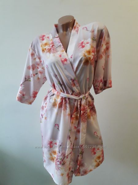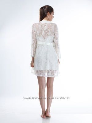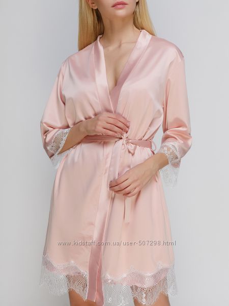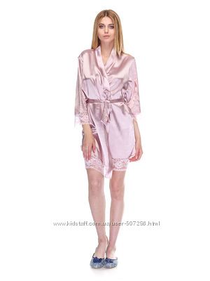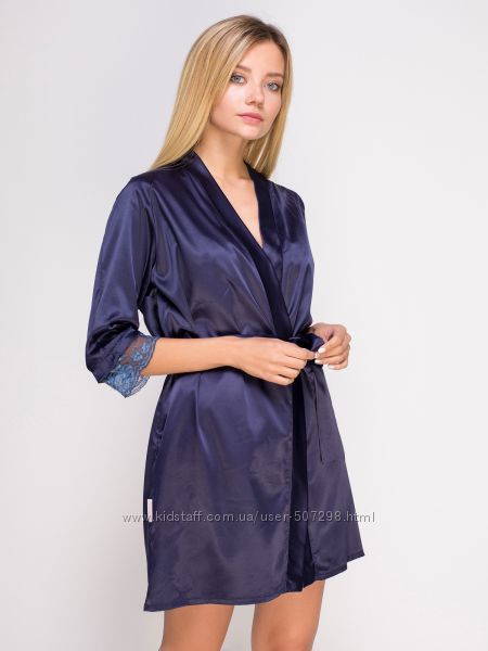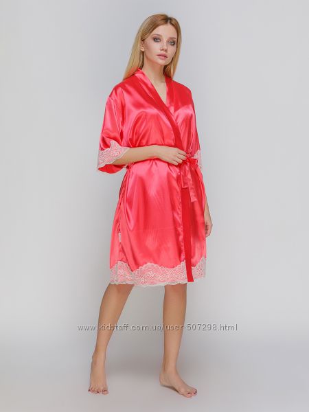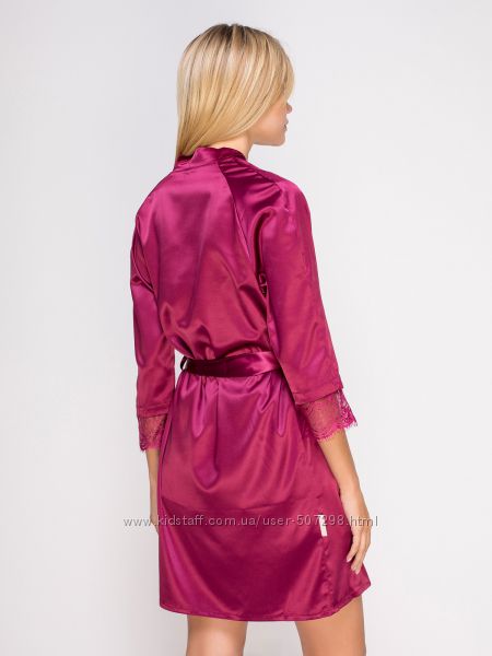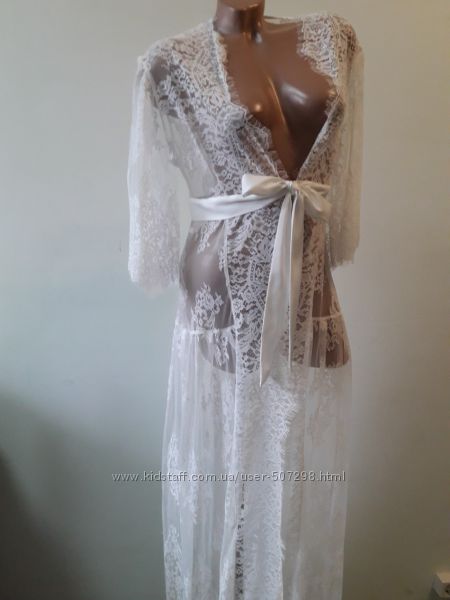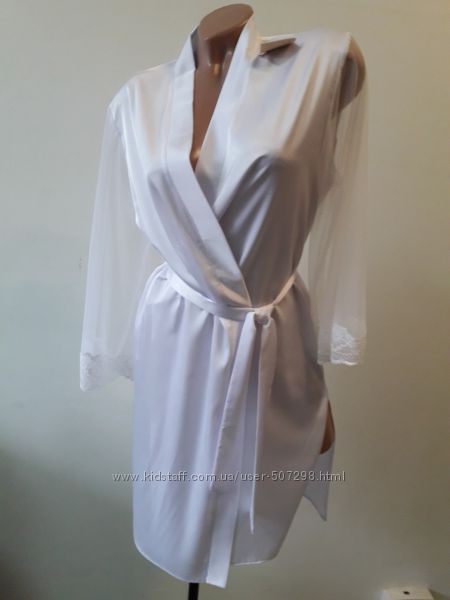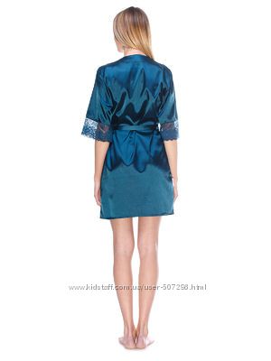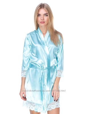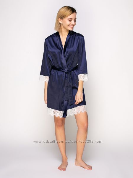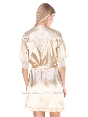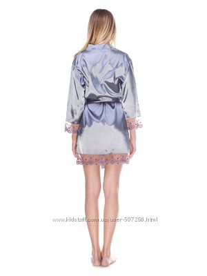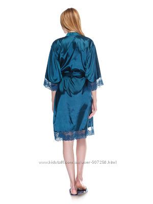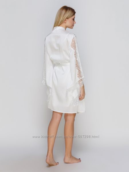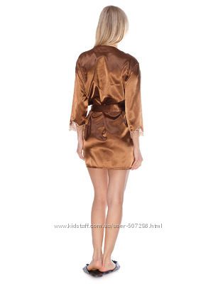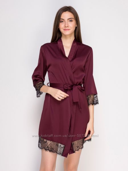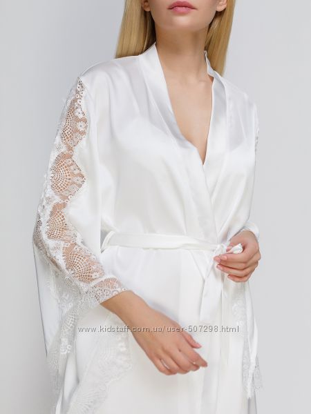Халат черный широкий рукав с кружевом №311 шелк армани - 430 грн