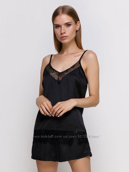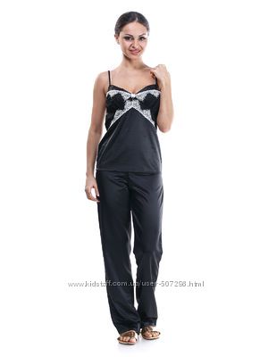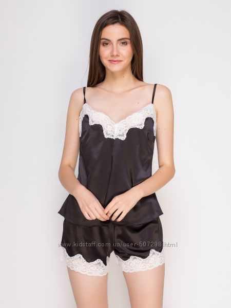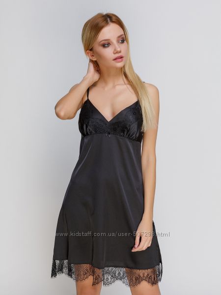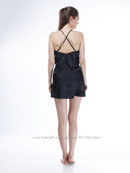 Сорочка черная ночнушка №312 шелк армани с кружевом -300 грн