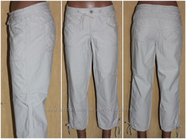 Бриджи капри Esprit 36/38 из лёгкой коттоновой ткани, четыре кармана, кулиски на поясе и на штанинах внизу. Состояние чудовое, без нюансов. ЗАМЕРЫ: ПОТалия 37, ПОБёдра 46, Посадка 22/31, ПОШтанина 28/20, Шаговая длина 60, Дл изд 81 см ткань тянется!