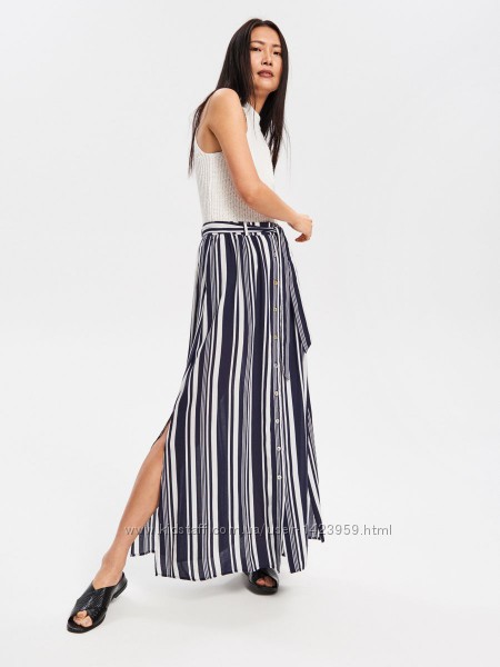 Клёвая Юбка макси в полоску с поясом завязкой на пуговицах с карманами Reserved 14/ 48-50р Новая с ценником на 22.99 Евро (645 г р н ) Цену ставлю окончательную) Замеры: ПОТ 42, ПОБ 70, ПОНиза 93, Выс.Разреза 47, Дл. Изд-я 105см. Талию можно меньше 480гр