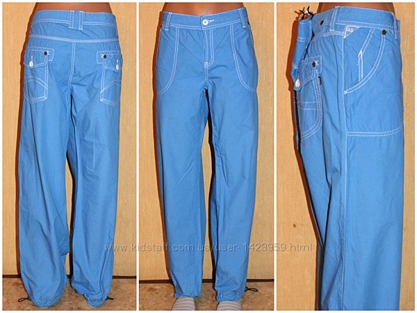 Брюки лето синий лёгкий коттон, g 3000 джинсовый 33р Ярко голубые летние брюки 100% коттон, G 3000 , состояние новых, ткань тонкая и приятная, белая отстрочка и фурнитура, 5 карманов, внизу можно затягивать на кулису ЗАМЕРЫ: ПОТ 50, ПОБ 61, Выс посадки 2