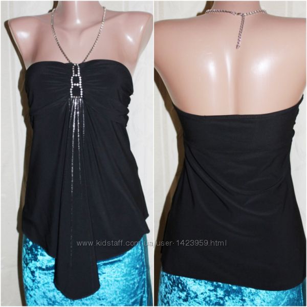 Блузка топ чёрный с колье из камней, river island, оригинал англия10р Цена 100 грн ЗАМЕРЫ: ПОГруди 39+чашечки под грудь, Дл.Изд-я с бретельками 39/52 см ткань очень тянется!
