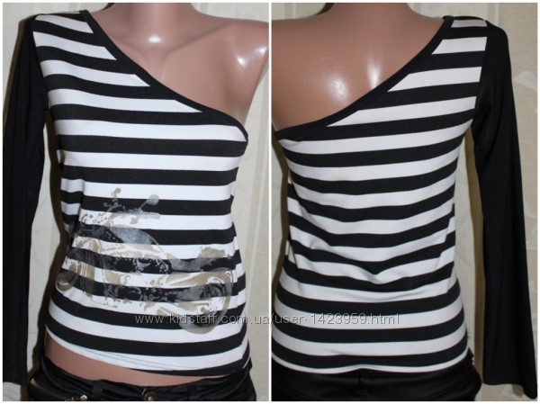 Модная кофта чёрно белая полоска с одним рукавом, Hot Stuff Англия, М-L цена 150 г р н