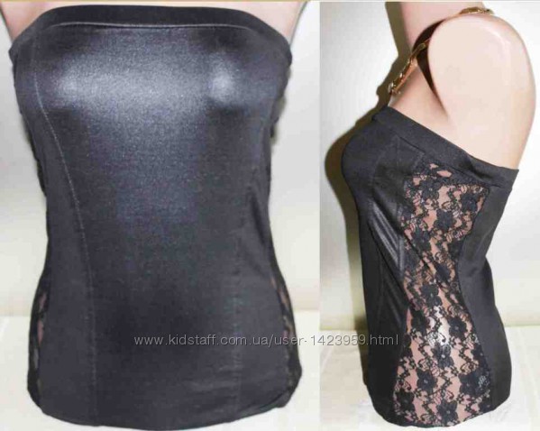 Классный топ майка чёрный стрейч с кружевом xs Цена 150 грн состояние нового, качество Абалденное ! пару раз одела и лежит, прекрасно держится на груди, полностью стрейчевый. Состав полиэстер, эластан
