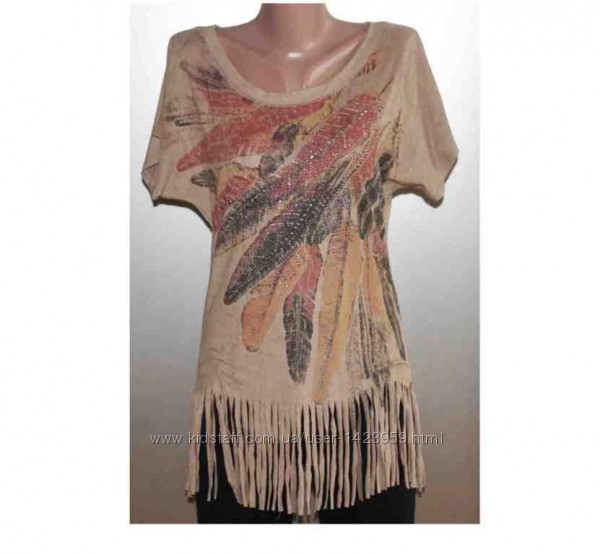 Стильная футболка блузка спандекс под замшу davida, США L/46-48 Цена 150 грн Штатовская классная мягкая как вторая кожа футболка в индейском стиле. Ткань спандекс с проворсом как замша, очень приятная к телу. ЗАМЕРЫ: ШПлеча с рукавом 65, ПОГруди 44, ПОни
