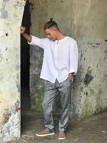 Мужские льняные брюки, рубахи, пиджаки, шорты (1)