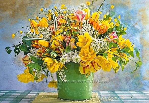 С-104567, Весенние цветы в зелёной вазе, 1000 эл.