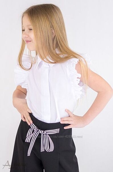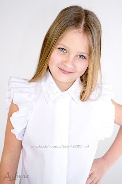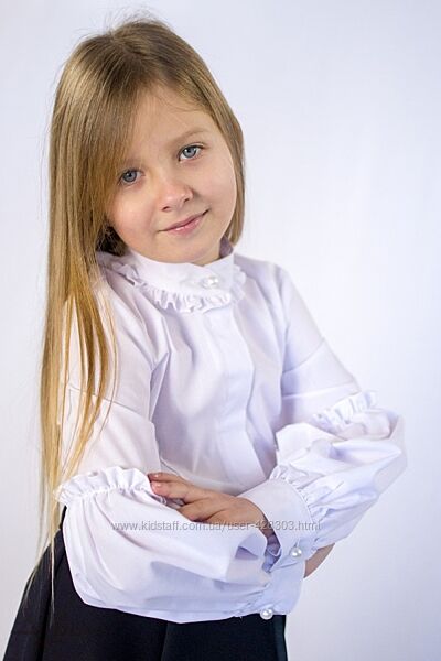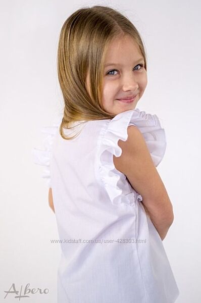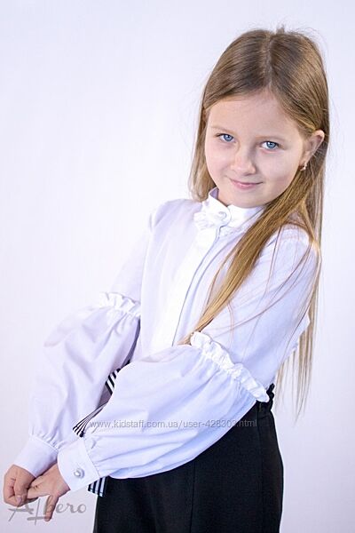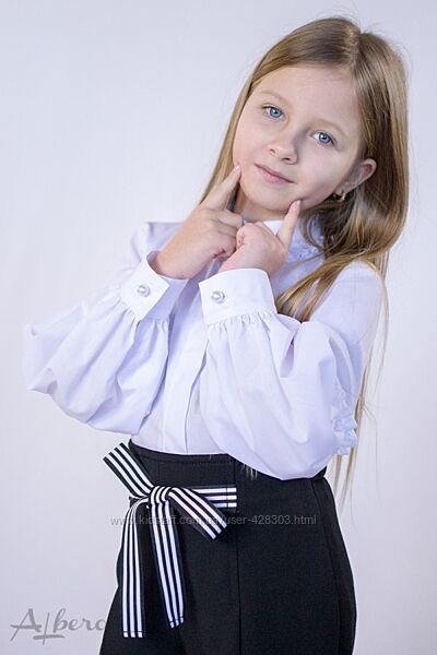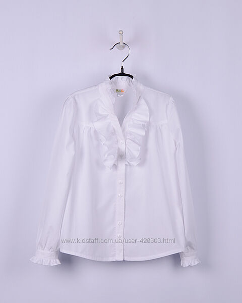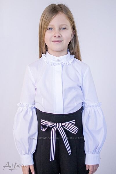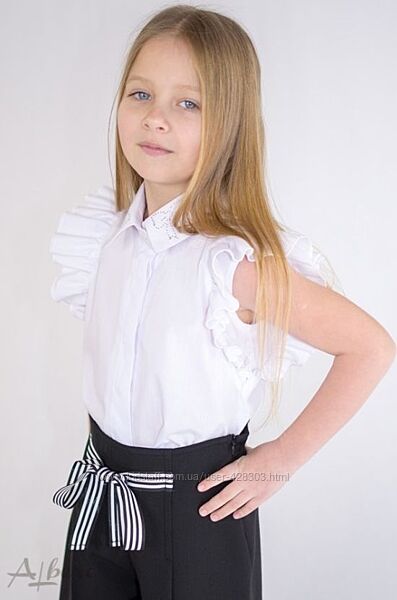 Блуза для девочки белая. Состав: 100% хлопок. Размеры в наличии: 116-122, 122-128, 140-146, 146-152. ЦЕНА РОЗНИЦА: 269 грн.