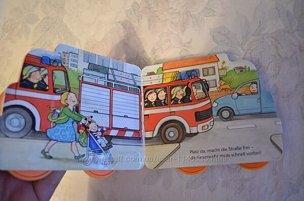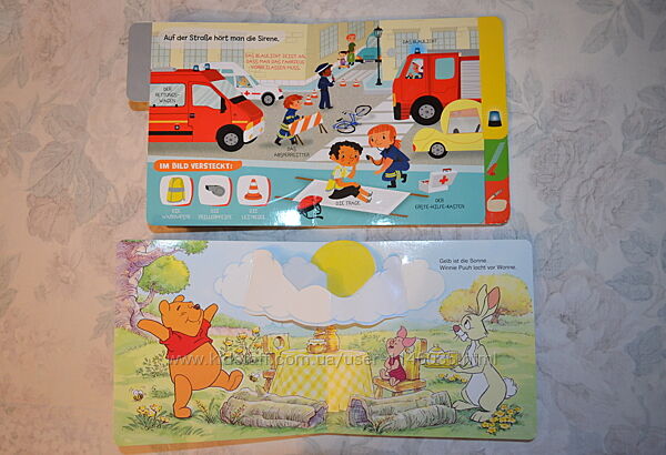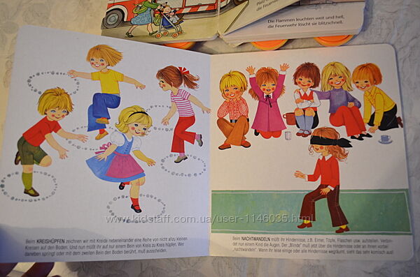70 грн, азмер книги 15 на 13 см, в книге 10 страниц. Состояние очень хорошее, но первый разворот подклеен скотчем, колесики торохтят ( как погремушки), смотрите на фото. На немецком