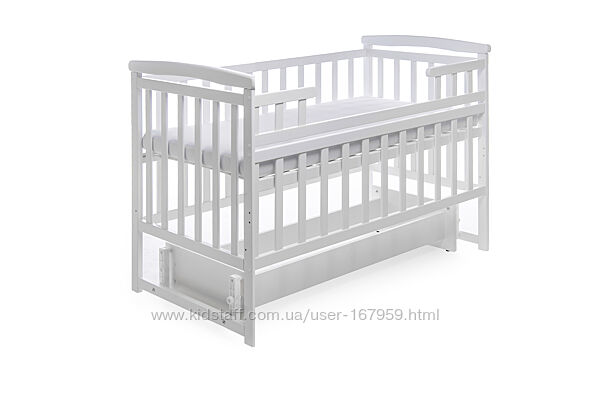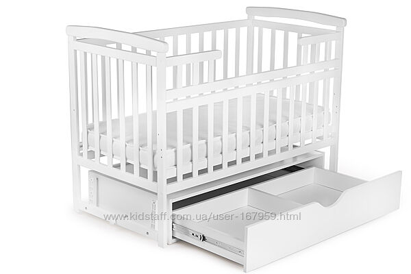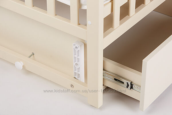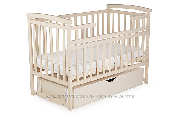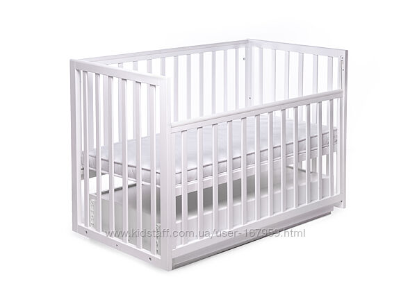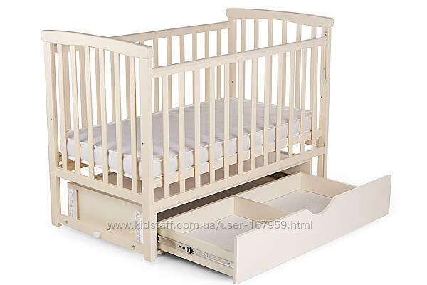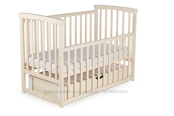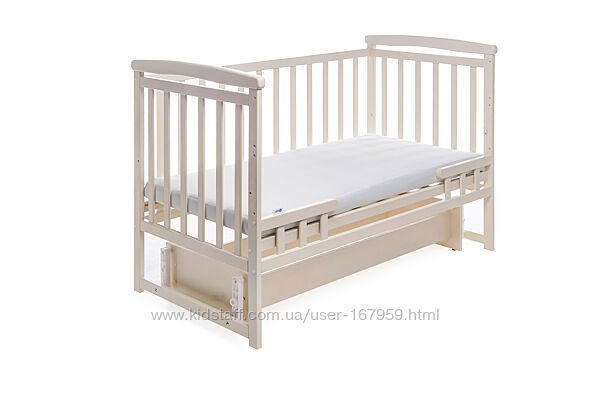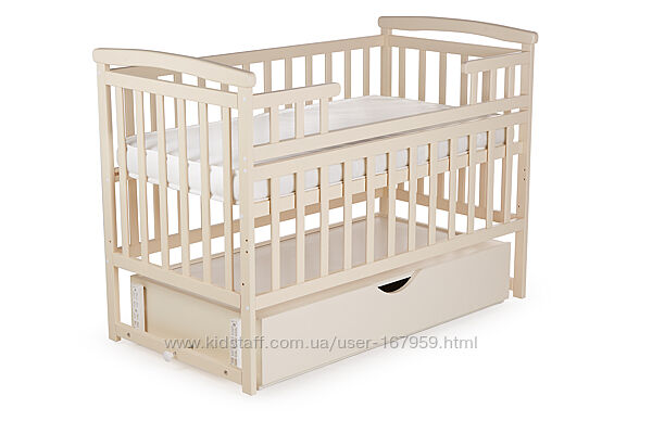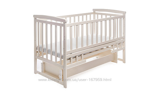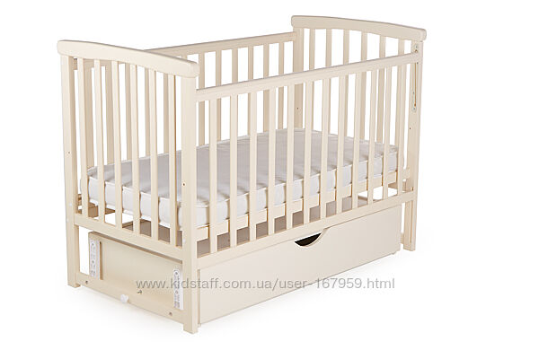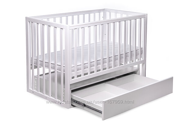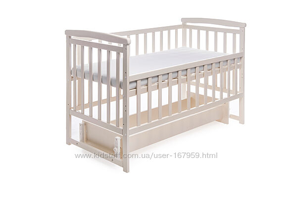 ліжечко MRIYA Колір: Білий Ваніль Шоколад Розміри: зовнішній: 125х70х93 см спальнe місцe: 120х60 см висота бортиків: 83 см висота опущеного бортику: 64 см ящик: 102х50х10 см упакування: 125х72х15 см вага: 32 кг