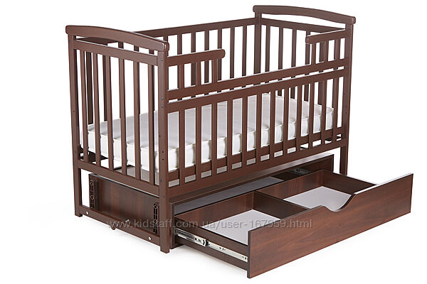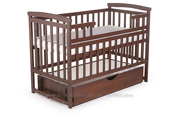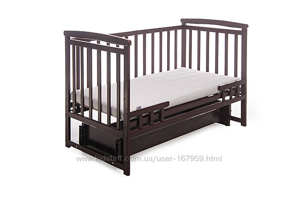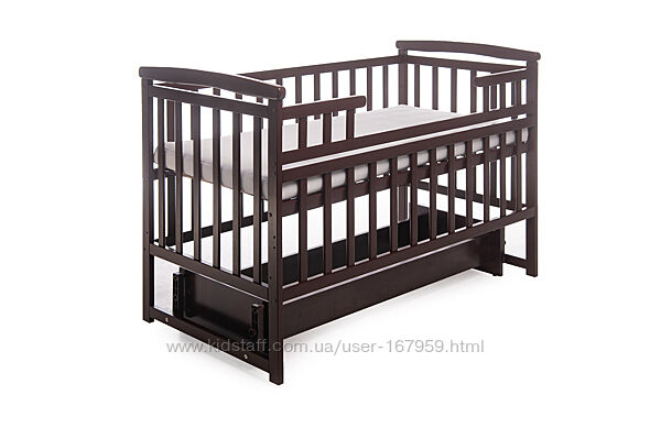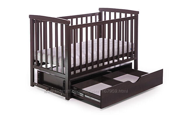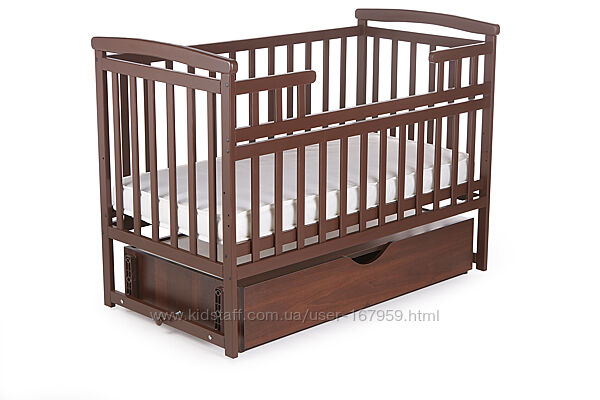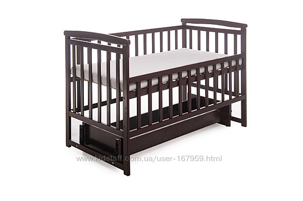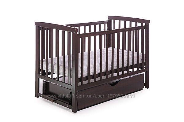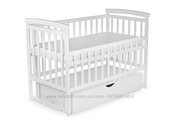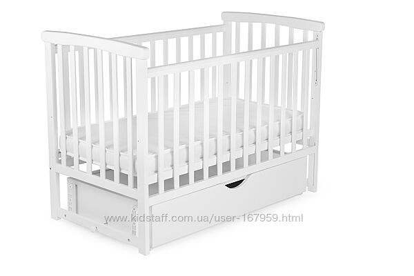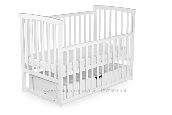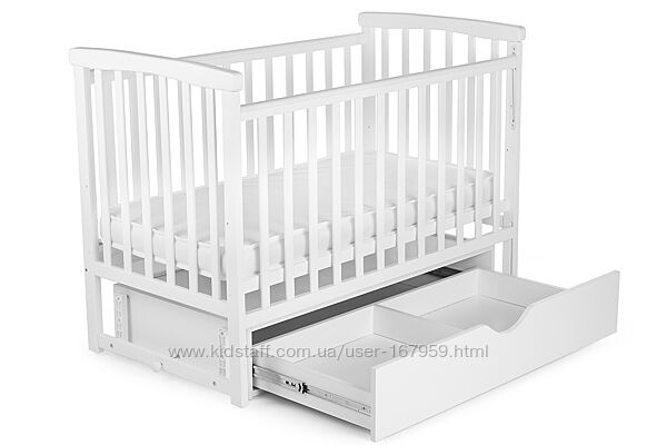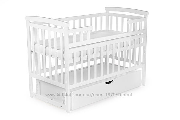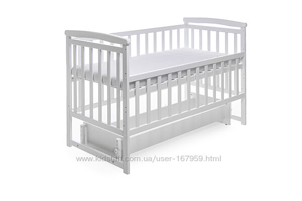 ліжечко MRIYA Колір: Білий Ваніль Шоколад Розміри: зовнішній: 125х70х93 см спальнe місцe: 120х60 см висота бортиків: 83 см висота опущеного бортику: 64 см ящик: 102х50х10 см упакування: 125х72х15 см вага: 32 кг