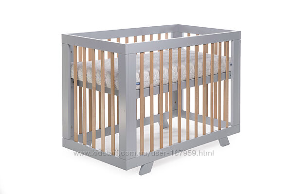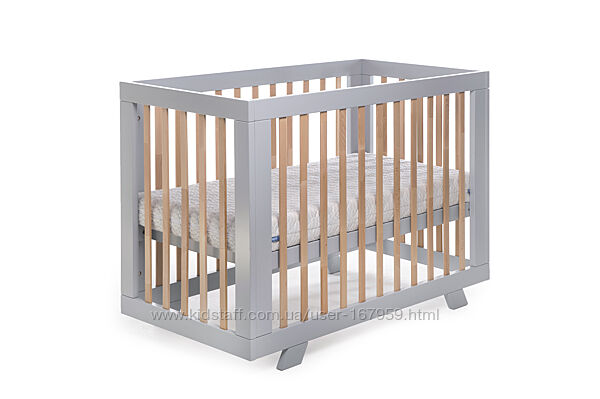 ліжечко ZORYANE Колір: Grey, White, Graphit (ламелі з буку натуральний колір) Розміри: зовнішній: 650х1250х930 спальне місце: 1200х600 вага: 35 кг, 40 кг з маятниковим механізмом ширина планки: 70×25мм