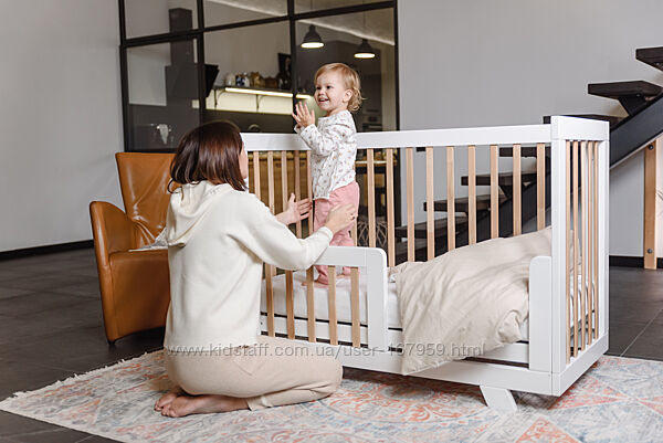 ліжечко TRANSFORMER minimal комплектація: без ящика Колір: Білий Ваніль Шоколад Розміри: зовнішній: 125х66х92 см спальнe місцe: 120х60 см упакування: 125х72х16 см вага: 32 кг