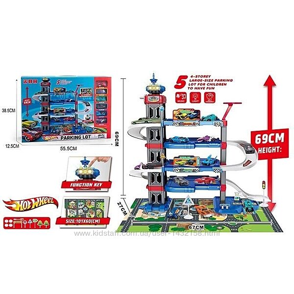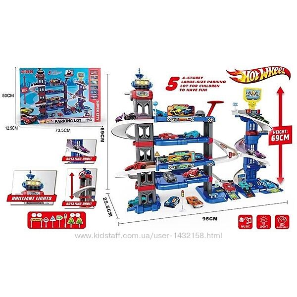 Трек HW світло, звук, механічний ліфт, 4 поверхи, 6 металопластикових машинок, дорожні знаки, наліпки, висота 69 см - 2350