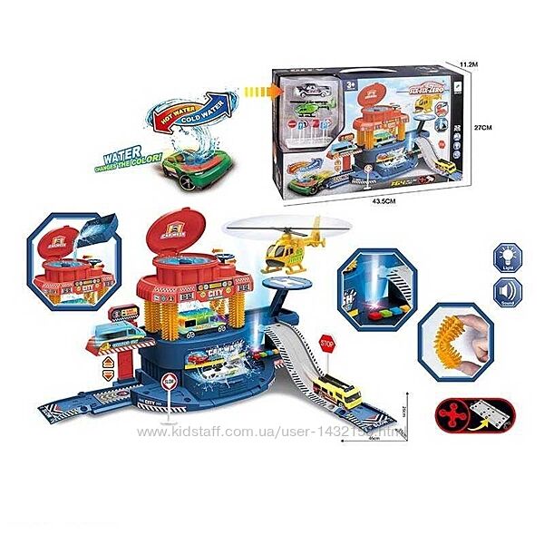 Паркінг-автомийка, на батарейках, світло, звук, змінюється колір машинки від температури води. - 885