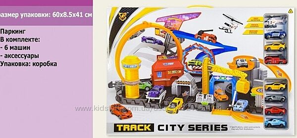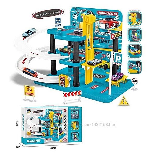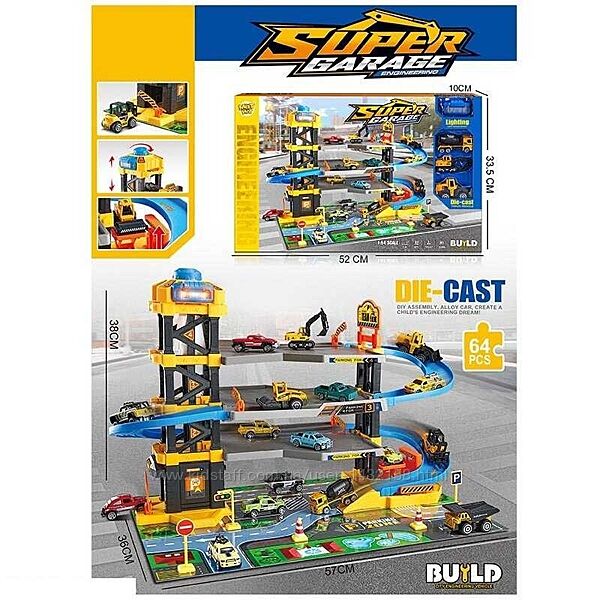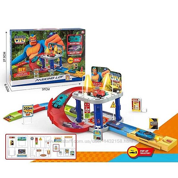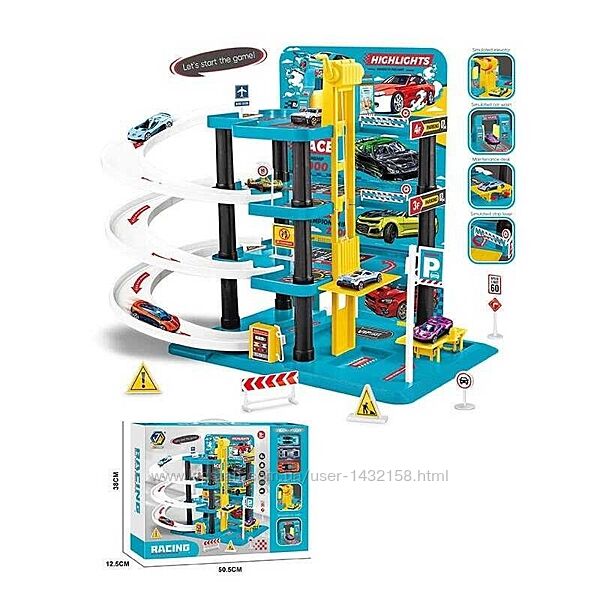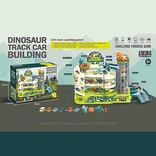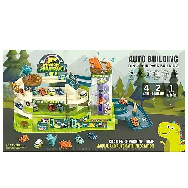 Парковка трек, підсвічув., зв.ефекти, 4поверхи, 6 машинок, ліфт, 2 режими роботи,барикади,диноз. - 1510