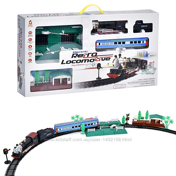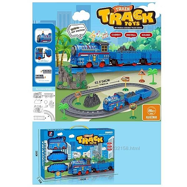 Залізниця локомотив, 20 предметів, дим, муз(рос), світло, на бат-ці, в кор-ці, 70-44-10см - 1400