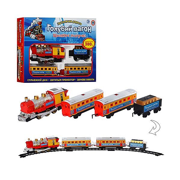 Залізниця Голубий вагон,муз(укр),світ,дим,довжина колій380см,бат,кор. 47-33-7см - 665