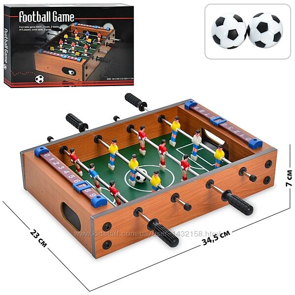 ФУТБОЛ 34,5-23-7СМ, ДЕРЕВ´ЯНИЙ, НА ШТАНГАХ, ШКАЛА ВЕДЕННЯ РАХУНКУ, М´ЯЧ 2ШТ, В КОР-ЦІ - 850