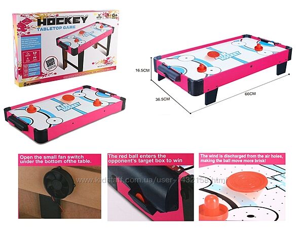Хокей повітряний, дерев´яний, на ніжках, 66-36,5-16,5см, поле 58,5-33,5см, шайба 2шт, 2 біти, шкала вед.рахунку, в кор-ці, 62-37-8см - 1325