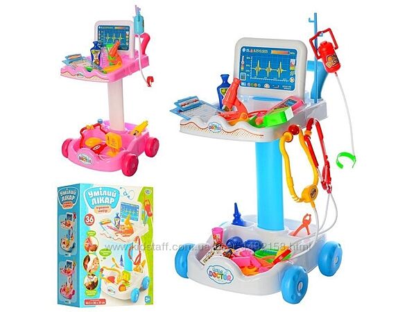 Лікар візок 25-31-72см,мед.інструменти,звук,св,14предм,бат(табл), в кор-ці,34-50-14,5см - 725