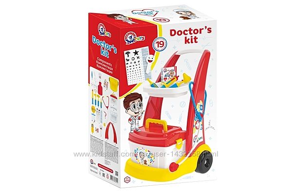 В комплекте: набор медицинских инструментов и приспособлений, чемоданчик на колесах. Крышка чемодана украшена дизайнерским рисунком, который не теряет яркости и является долговечным. - 435